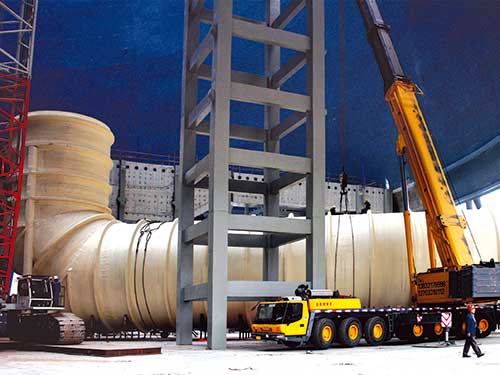 大型現場玻璃鋼儲罐介紹 大型現場玻璃鋼儲罐以熱固性樹脂為基體材料,玻璃纖維為增強材料,采用連續纖維進行螺旋纏繞,工藝先進,結構合理。具備一般玻璃鋼儲罐的輕質高強、耐化學腐...